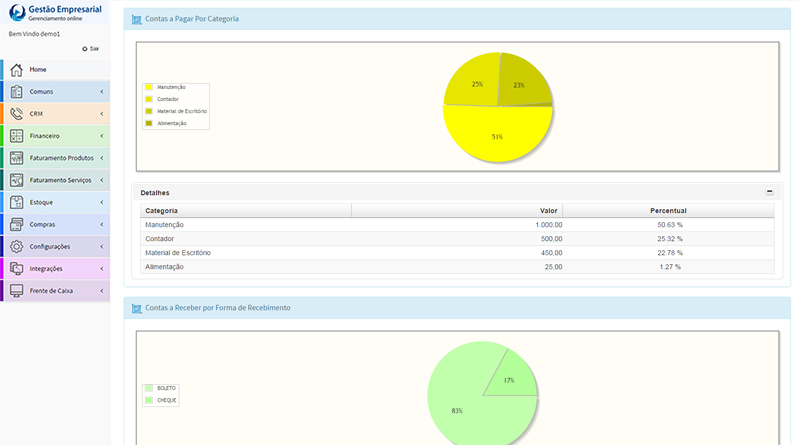 Pagamentos e RecebimentosOrganize as despesas e controle os recebimentos da sua empresa com muito mais agilidade. Através do Controle Financeiro você sabe exatamente o quanto investiu, recebeu e pagou durante o mês, emite relatórios com demonstrativos e gráficos de evolução para futuras tomadas de decisões, em tempo real e a qualquer hora do dia. |